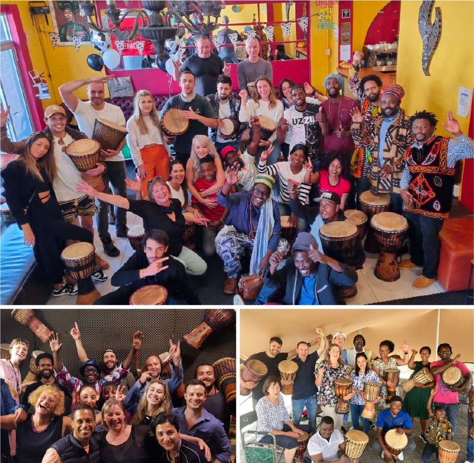 Our group drumming sessions bring friends, families and colleagues together in a relaxed, joyful setting. Through rhythm, movement and shared beats, the group quickly relaxes, connects and creates something meaningful together. It’s a fun, memorable experience that leaves people feeling energised and connected.