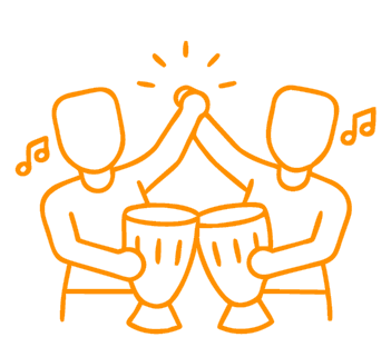 Interactive drumming pulls a room into shared attention fast. From there, we build cohesion, energy and cooperation – a real sense of ‘we’. Our sessions follow a deliberate architecture: a sequence of cues and activities designed to produce reliable group outcomes.
